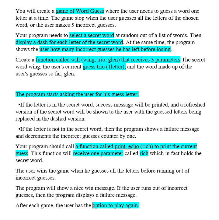 You Will Create A Game Of Word Guess Where The User Chegg Com